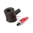 A piteira, feita de acrílico italiano em um vibrante tom vermelho, simboliza o sangue, a vitalidade que Drácula busca em suas vítimas. As listras brancas que adornam a piteira representam a pele do Conde, pálida e gelada, refletindo sua natureza vampírica. Já os anéis de alumínio que decoram o cachimbo simbolizam a prata, um dos poucos materiais que poderiam derrotar o temido vampiro.
