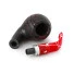 A piteira, feita de acrílico italiano em um vibrante tom vermelho, simboliza o sangue, a vitalidade que Drácula busca em suas vítimas. As listras brancas que adornam a piteira representam a pele do Conde, pálida e gelada, refletindo sua natureza vampírica. Já os anéis de alumínio que decoram o cachimbo simbolizam a prata, um dos poucos materiais que poderiam derrotar o temido vampiro.